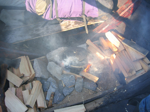 ![]() | Härdlåda på båtbottnen med öppen eld för matlagning. Foto: Henri Bergius. |