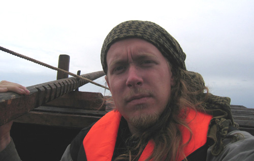 Efter riggningen anländer den fjärde besättningsmannen Feodosi Travin. Bekantskapen med den här ryssen blir en intressant upplevelse. Han är gammaltroende ortodox. Jag har ibland lite svårt att kommunicera med honom för han behärskar bara ryska och latin. Han bor på Vita havets västkust.