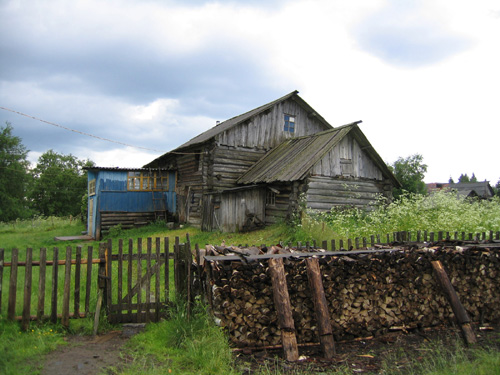 ![]() | Bostadsarkitekturen består av gråa gamla stockhus. Det kan vara svårt att avgöra vilka av dem som är bebodda, men om det finns en bil på gården får man anta att huset är bebott. |