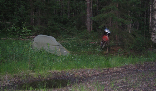 Jag slår läger en bit norr om Karsevo. Dagsetappen 197 km.