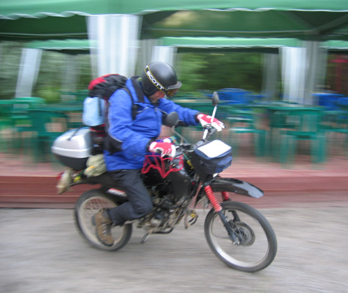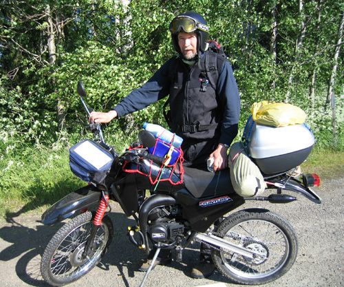 Jag var en ovan mopedist - hade inte kört moped på närmare 40 år! Jag märker snart att det är kallt att åka moped och jag får lov att klä på mig allt vad jag har med mig i klädväg, vilket inte är så mycket eftersom utrymmet på mopeden är begränsat. I packningen har jag prioriterar sådant som behövs för min framfart, såsom verktyg, reparationstillbehör, navigationsutrustning, tält, sovsäck och tvåtaktsolja.