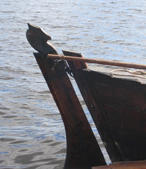 ![]() | Shnjakans roder. På 1100-talet övergav man vikingabåtarnas sidoroder till förmån för dylika stävroder. Foto: Henri Bergius. |