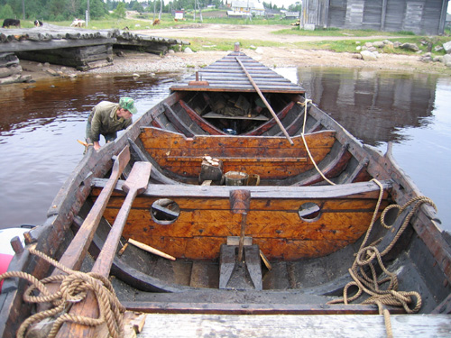 ![]() | Rodd på floden Vodla. Notera de grova årorna. |
