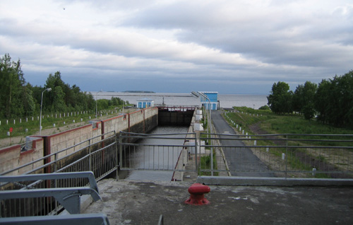 ![]() | Den beryktade stalinkanalen. Slussen vid Onegas nordkust. Här kom vi inte in med shnjakan. |